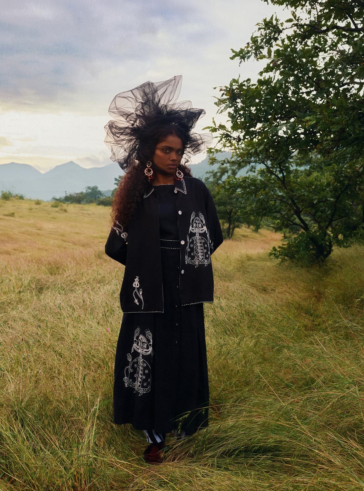 Made in Kala cotton, hand dyed and hand embroidered, Jodi, the young brand founded by two magazine stylists, has come into its own. Known for its playful approach to block printing from Jaipur and whimsical embroidery finished in Pune — think local flora, folk dancers, and fantastical creatures — the jackets allow for a lightness of expression without losing craft depth.