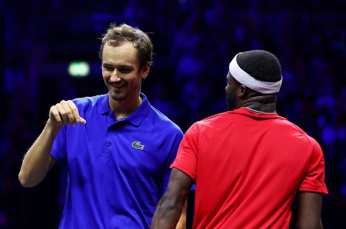 Frances Tiafoe defeats Daniil Medvedev for the first time. Photo by Maja Hitij/Getty Images