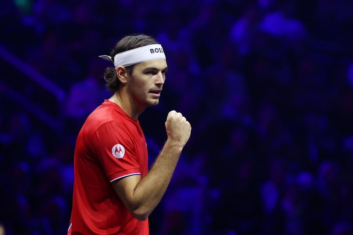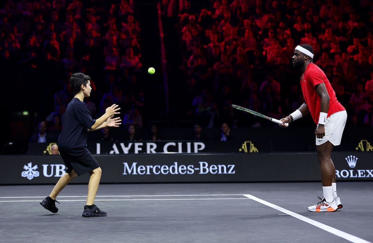 Frances Tiafoe connects with a Laver Cup ballkid. Photo by Maja Hitij/Getty Images