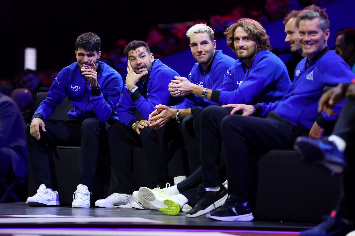 Carlos Alcaraz receives encouragement from Captain Borg. Photo by Clive Brunskill/Getty Images